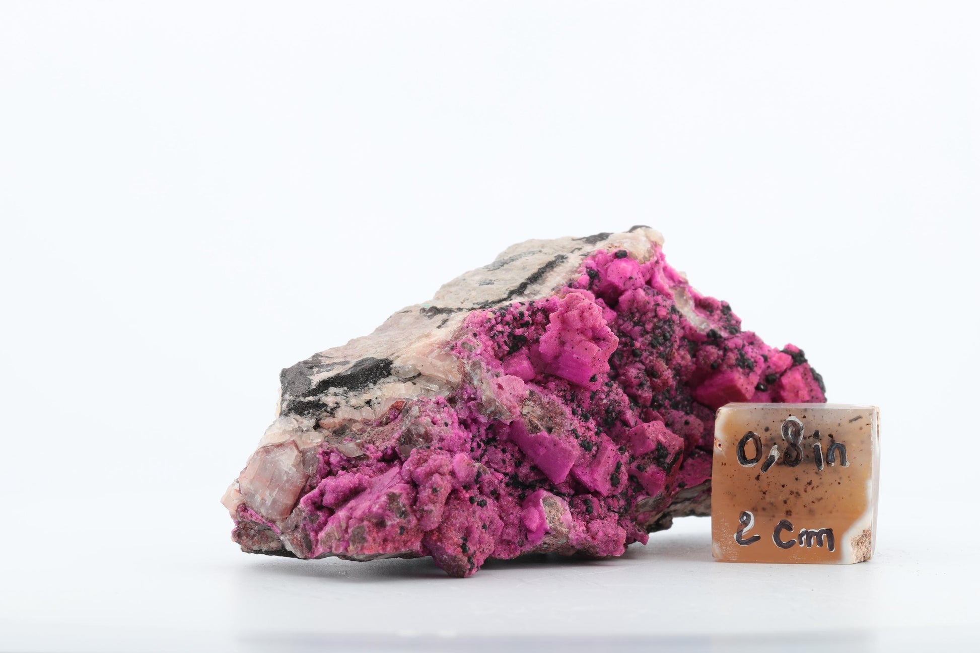 Ce superbe spécimen de CobaltoCalcite 💗 enrichi d’inclusions d’Hétérogénite (noires) provient de la célèbre mine Musonoi à Kolwezi, en République Démocratique du Congo 🇨🇩. Les cristaux d’un rose vif se développent harmonieusement sur une matrice rocheuse brute, tandis que les inclusions noires apportent un contraste saisissant qui met en valeur la beauté unique de la pièce. Avec un poids de 148 g et des dimensions de 8,5 x 4 x 3,5 cm, ce spécimen est une véritable pièce de collection pour les passionnés de minéraux rares ou un magnifique ajout décoratif.
