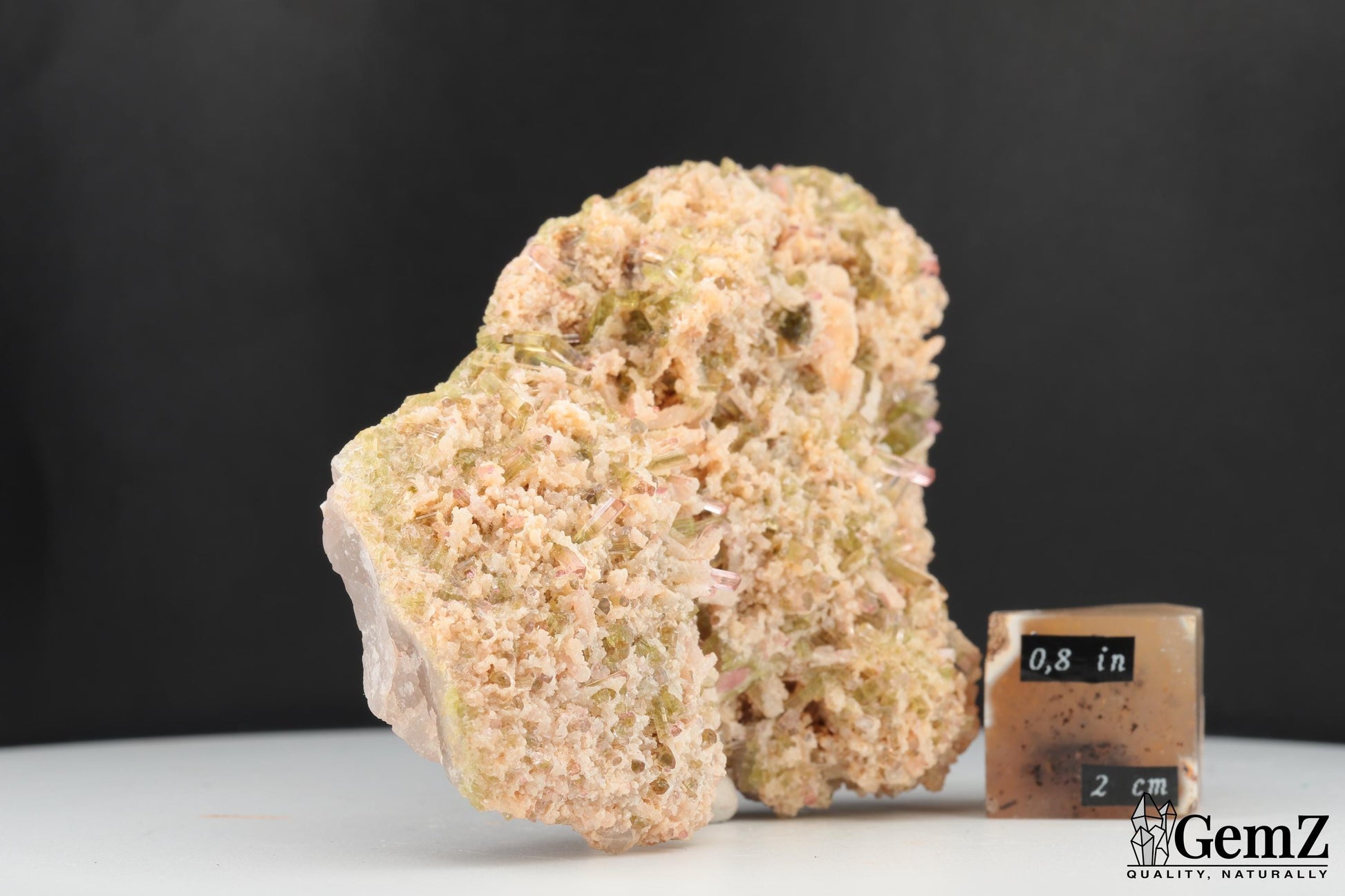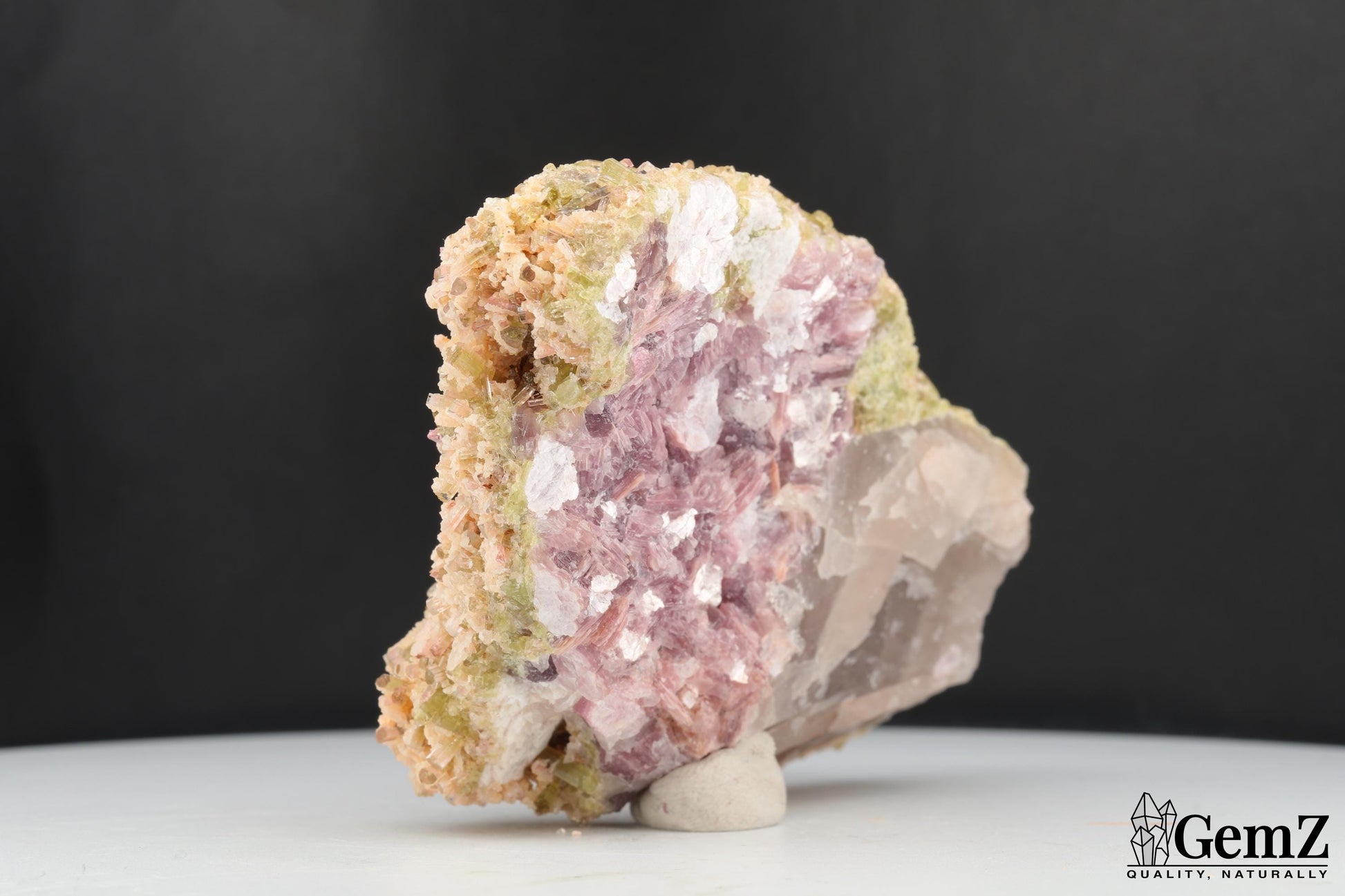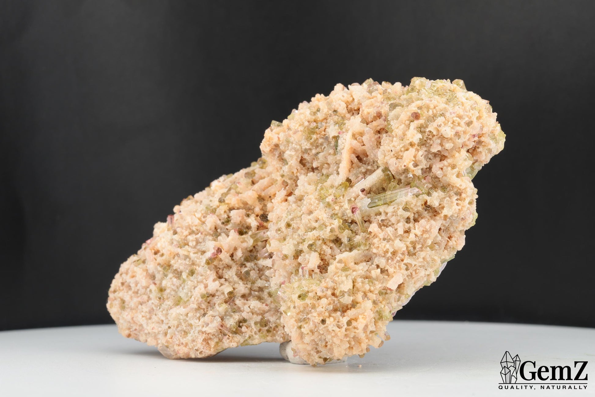 Admirez ce superbe spécimen naturel composé de fins cristaux de tourmaline multicolores, délicatement répartis sur une gangue de quartz et de lépidolite. Les nuances de vert, rose et blanc offrent un spectacle visuel unique et captivant, témoignant de la beauté des formations naturelles du Pakistan.