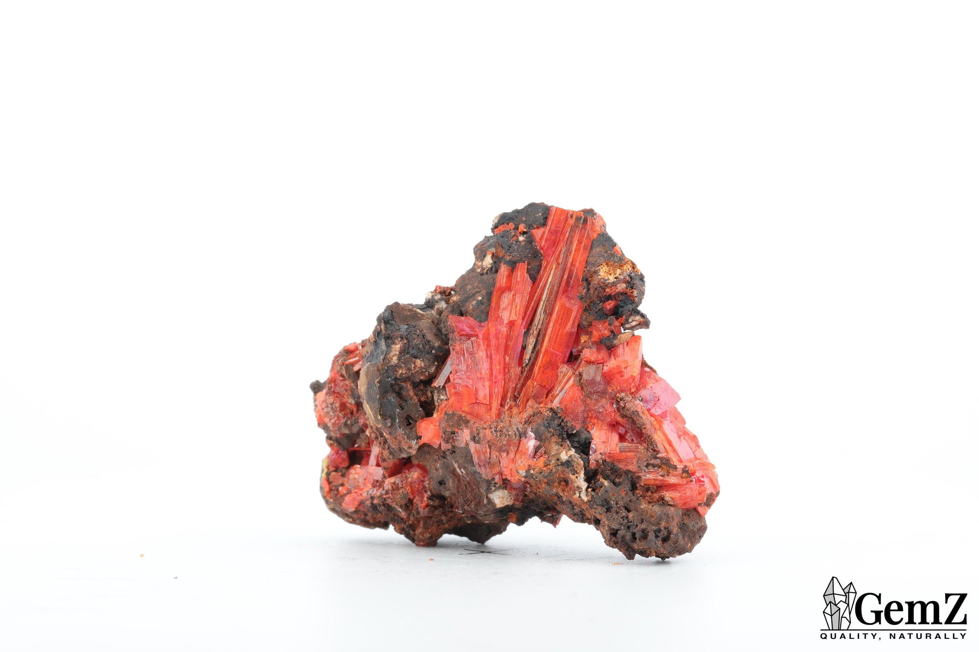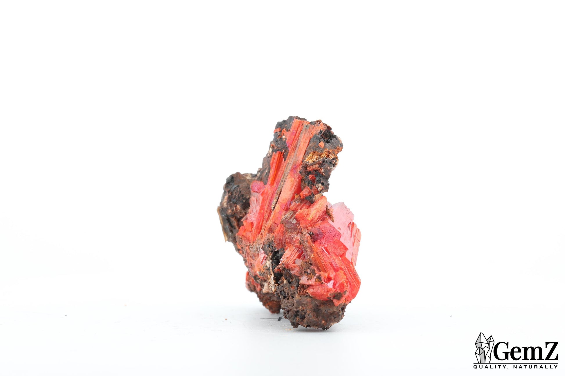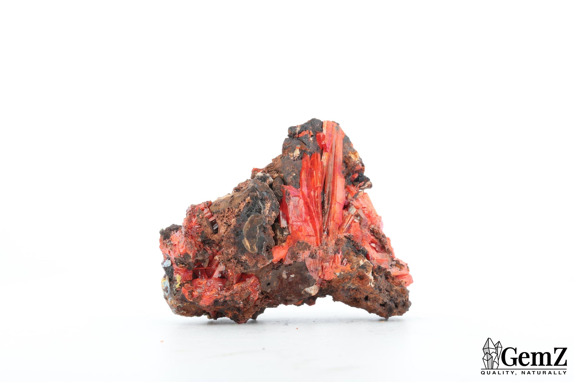 La crocoïte est un minéral rare composé principalement de chromate de plomb, ce qui lui confère sa teinte rouge exceptionnelle. Découverte pour la première fois en Russie, elle est devenue emblématique de la région de Dundas en Tasmanie, connue pour produire des spécimens parmi les plus beaux au monde.