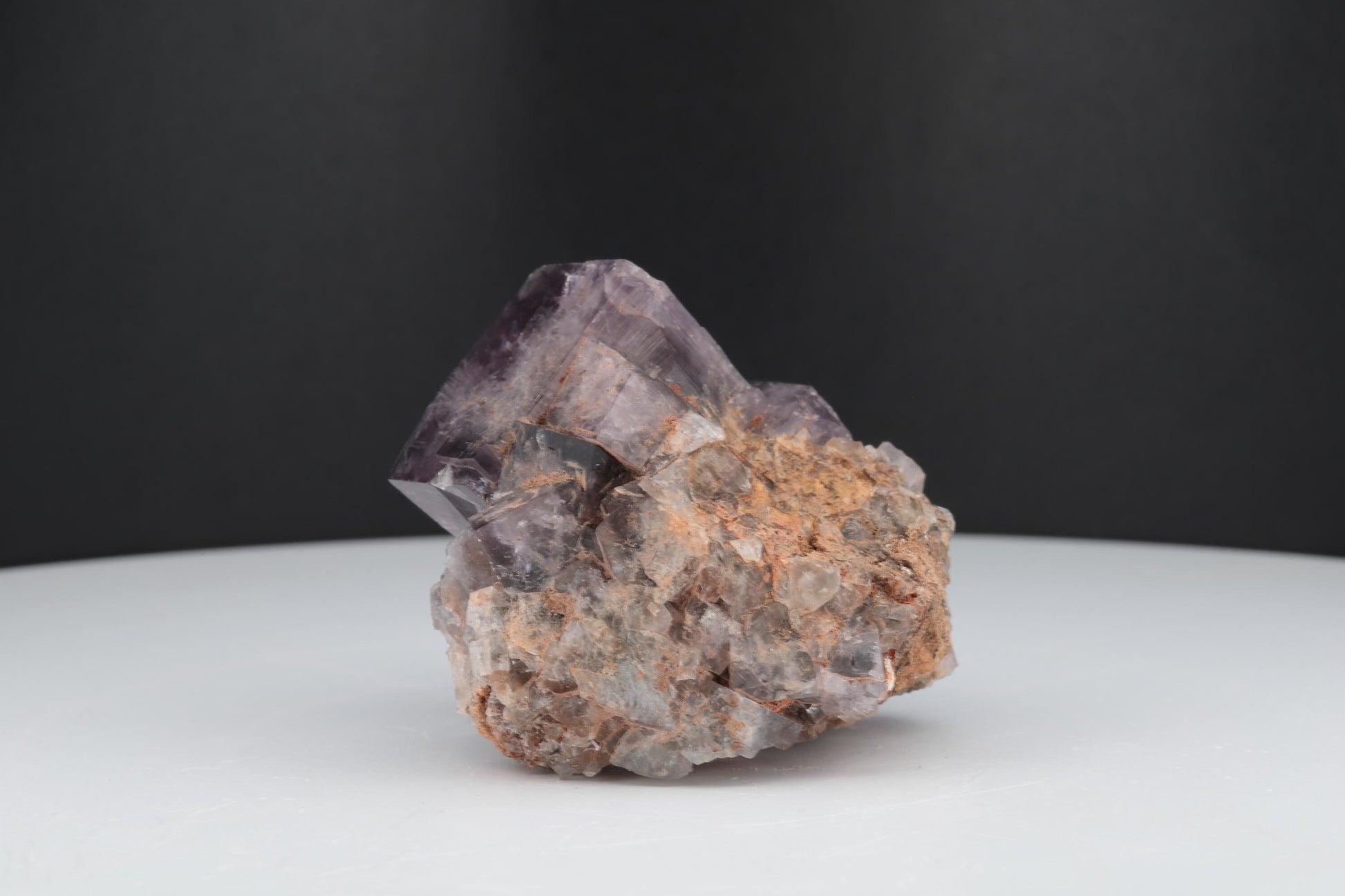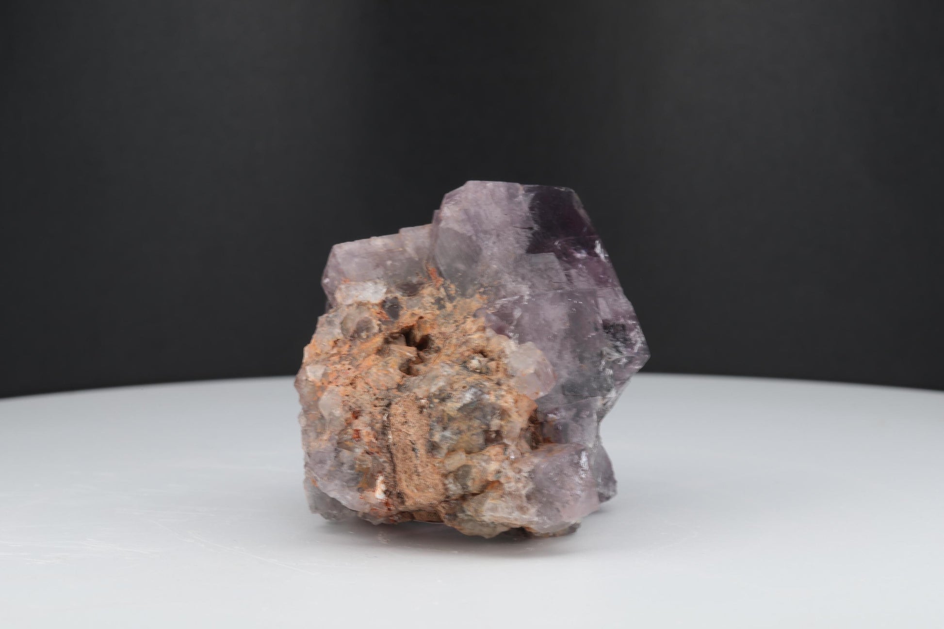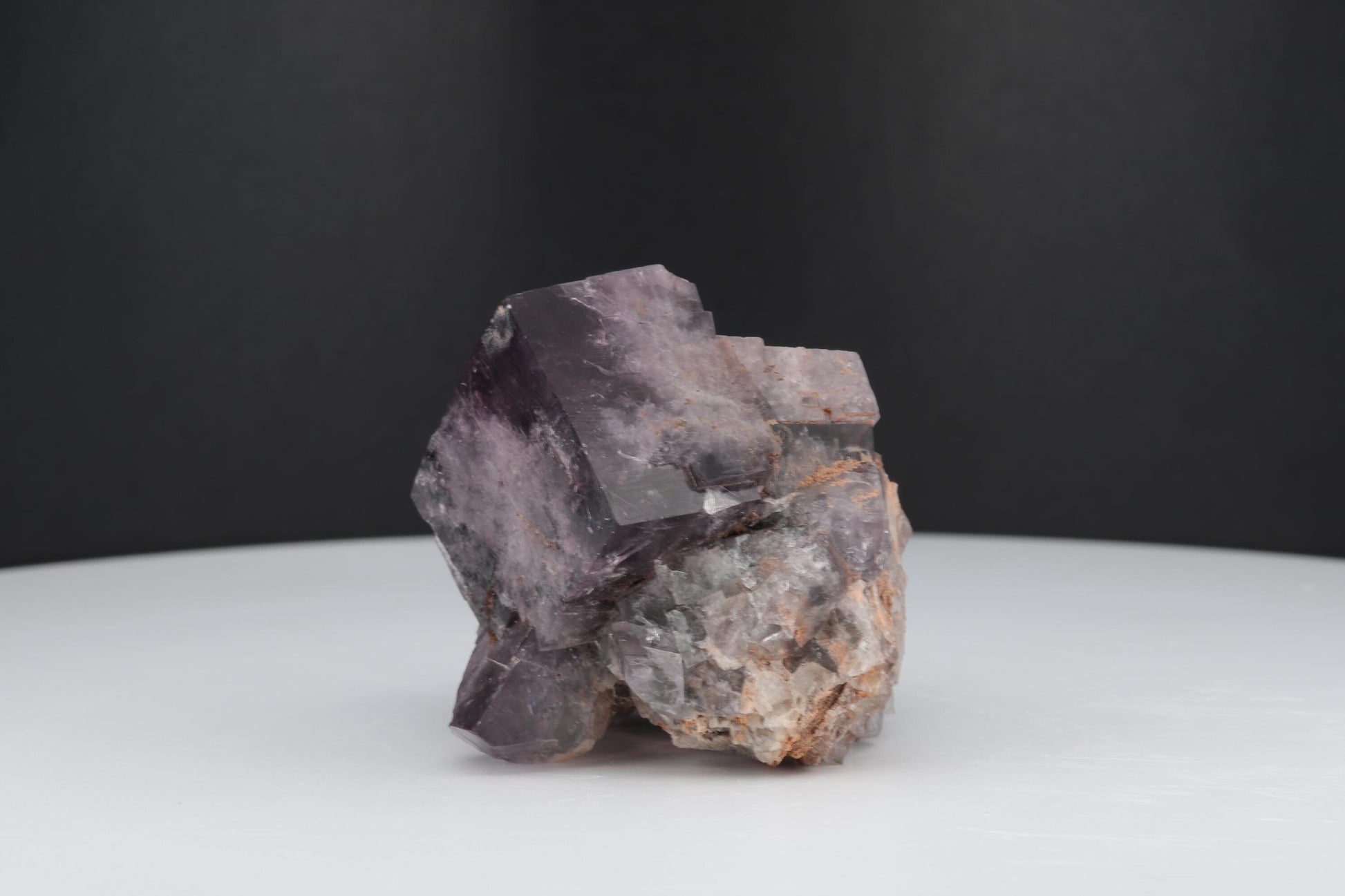 Magnifique spécimen de fluorite en provenance de la "Purple Rain Pocket" de la Lady Annabella Mine en Angleterre. Pesant 70 grammes et mesurant 4,5 cm de hauteur, 4 cm de largeur et 4 cm de profondeur, cette pièce se distingue par ses cristaux cubiques aux teintes subtiles de violet foncé, nuancées de lavande et de gris. La pierre révèle également des inclusions minérales naturelles, apportant des touches de brun et d’orange terreux, qui contrastent élégamment avec les couleurs principales et enrichissent son esthétique minérale.