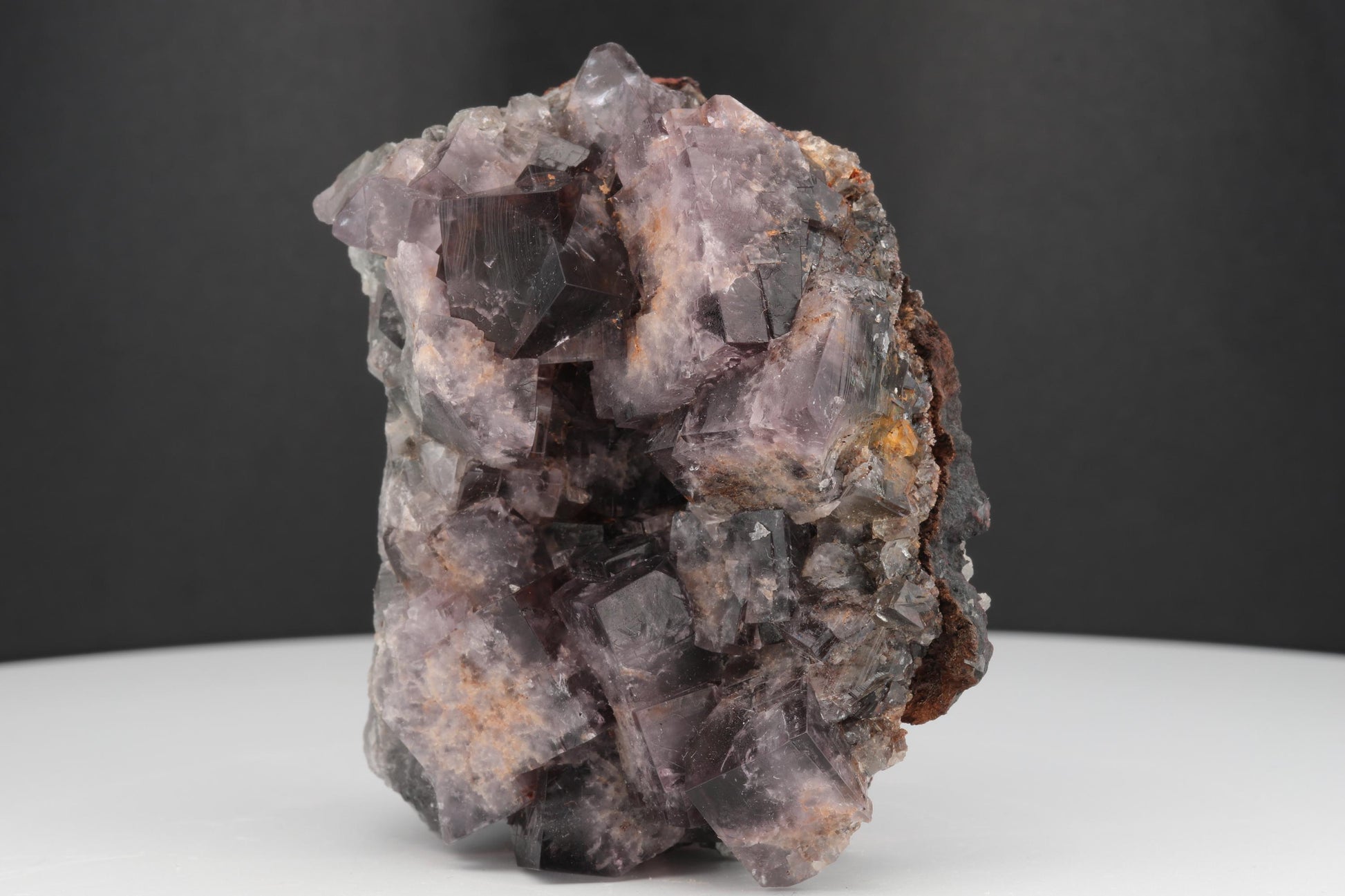 Magnifique spécimen de fluorite issu de la fameuse "Purple Rain Pocket" de la Lady Annabella Mine en Angleterre. Cette pièce de 142 grammes se distingue par ses cristaux cubiques de fluorite aux nuances subtiles de violet et de gris lavande, sublimées par des inclusions naturelles de minéraux terreux qui ajoutent une touche de contraste fascinante. Le spécimen mesure 6,5 cm de haut, 5,5 cm de large et 3 cm d'épaisseur, offrant une profondeur visuelle et un caractère minéral unique.