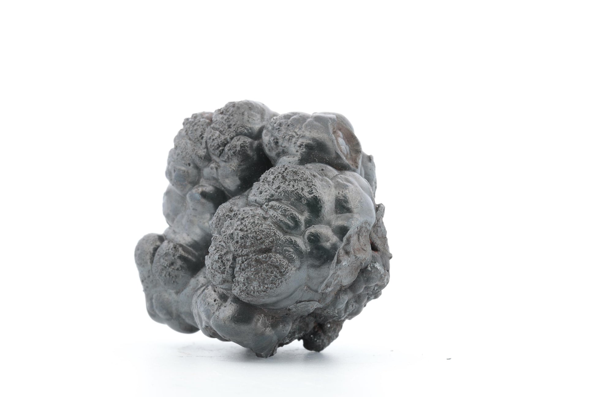 Détails techniques : Minéral : Goethite Origine : Maroc Poids : 168 g Dimensions : 5 x 4,5 x 3,5 cm Couleur : Noir métallique avec reflets argentés Formation : Botryoïdale