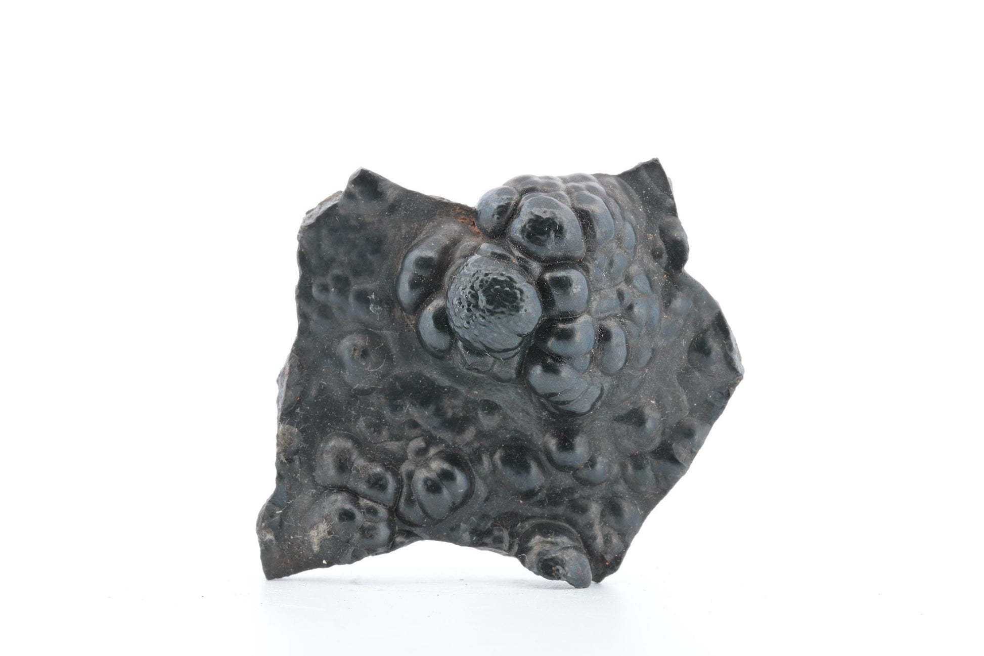 Détails techniques : Minéral : Goethite Origine : Maroc Poids : 57 g Dimensions : 5 x 4 x 2,5 cm Couleur : Noir métallique brillant Formation : Botryoïdale