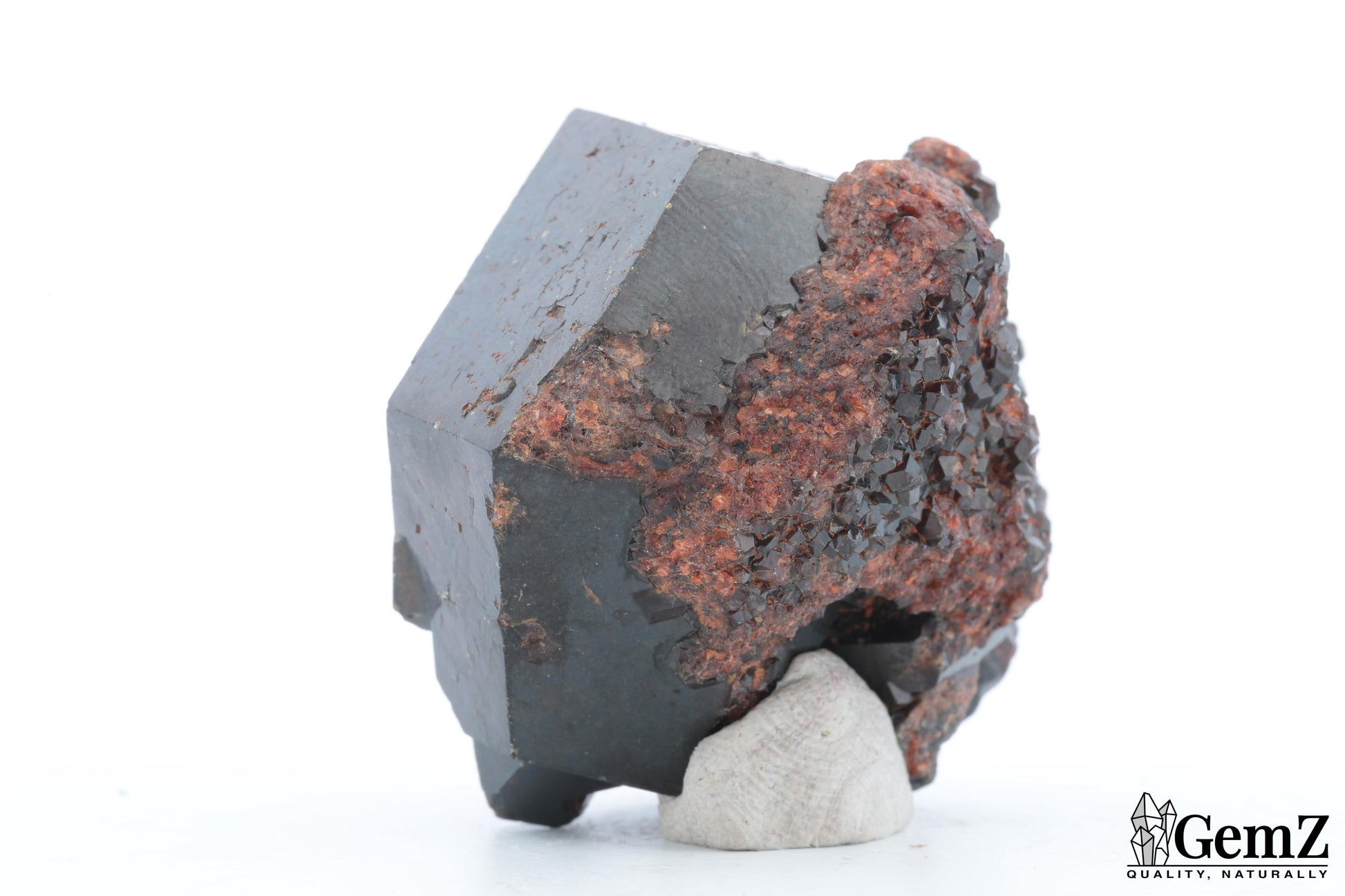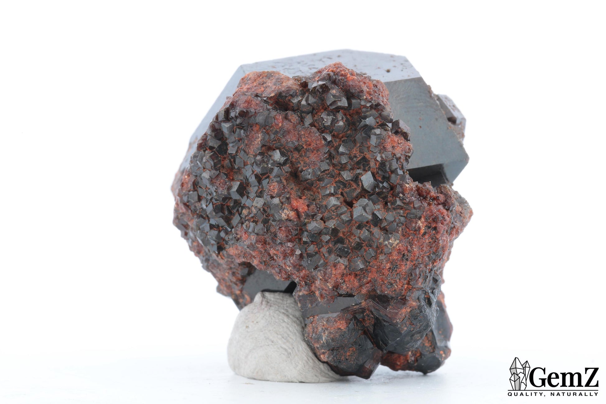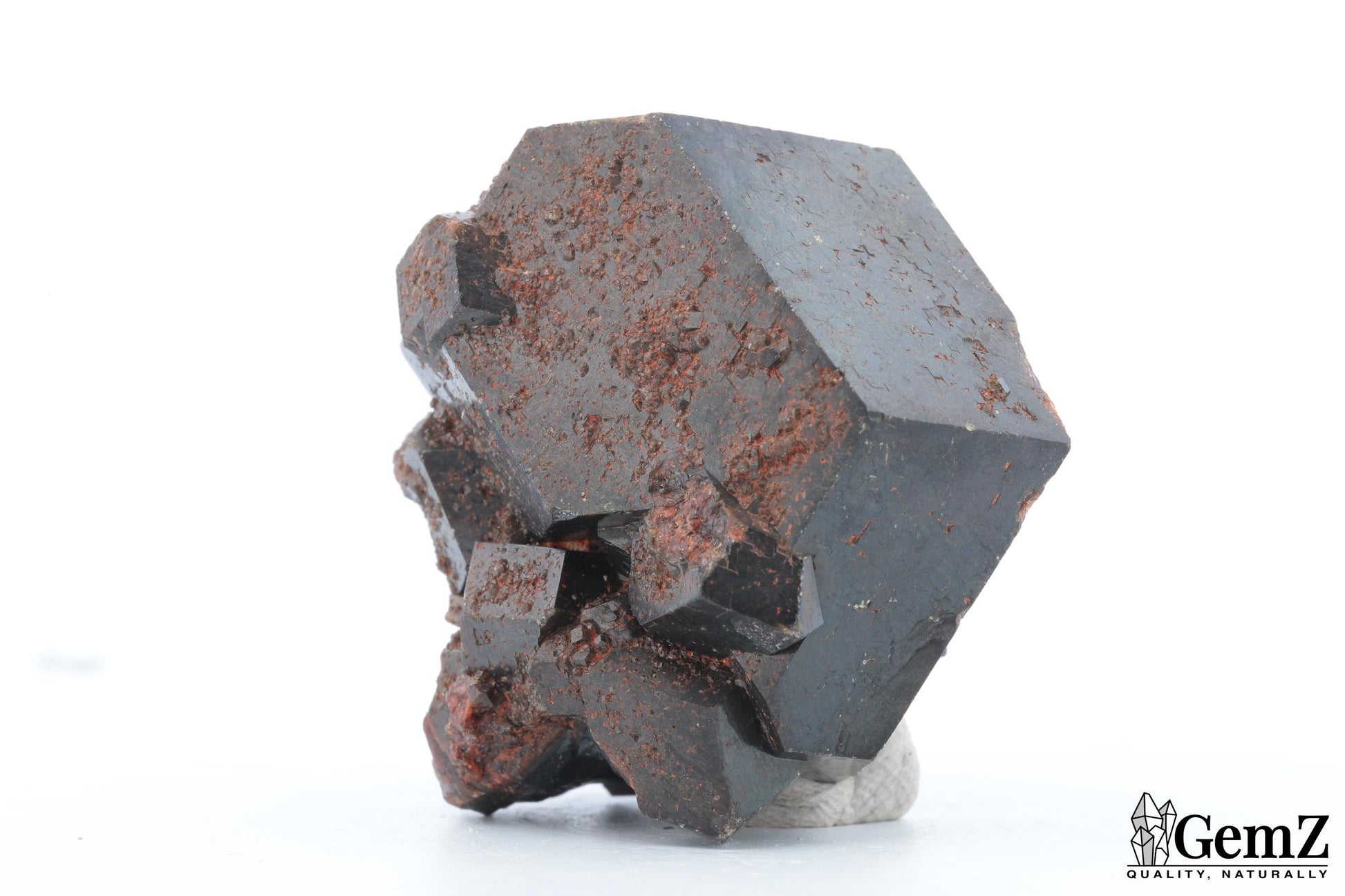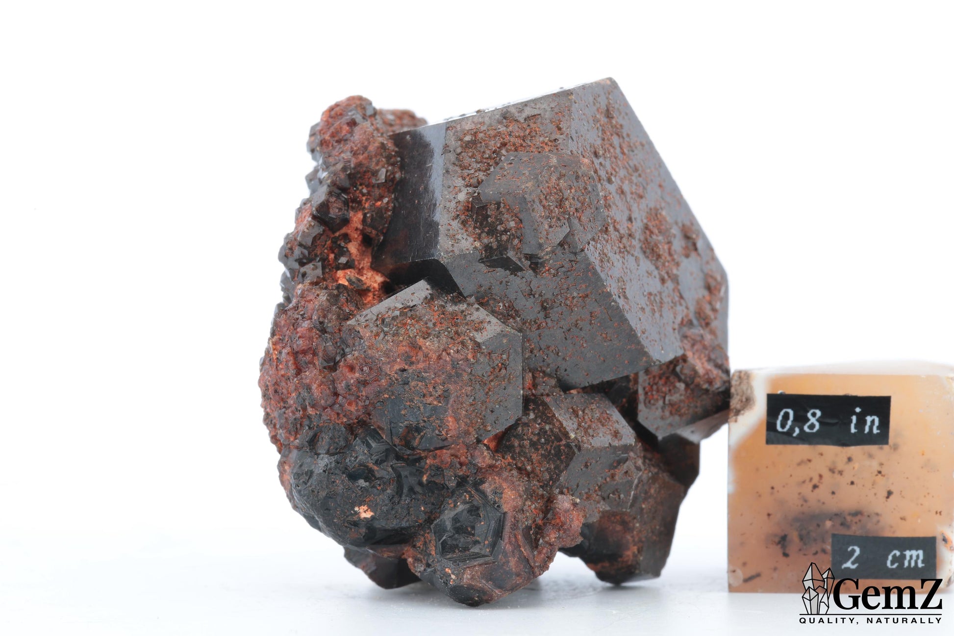 Ce grenat mélanite captivant présente des cristaux brillants aux reflets noirs profonds, parsemés d’une surface rougeâtre due à l’altération naturelle. Sa structure géométrique remarquable témoigne d’une formation parfaite, accentuée par la richesse minérale du site d’Ojos Españoles.