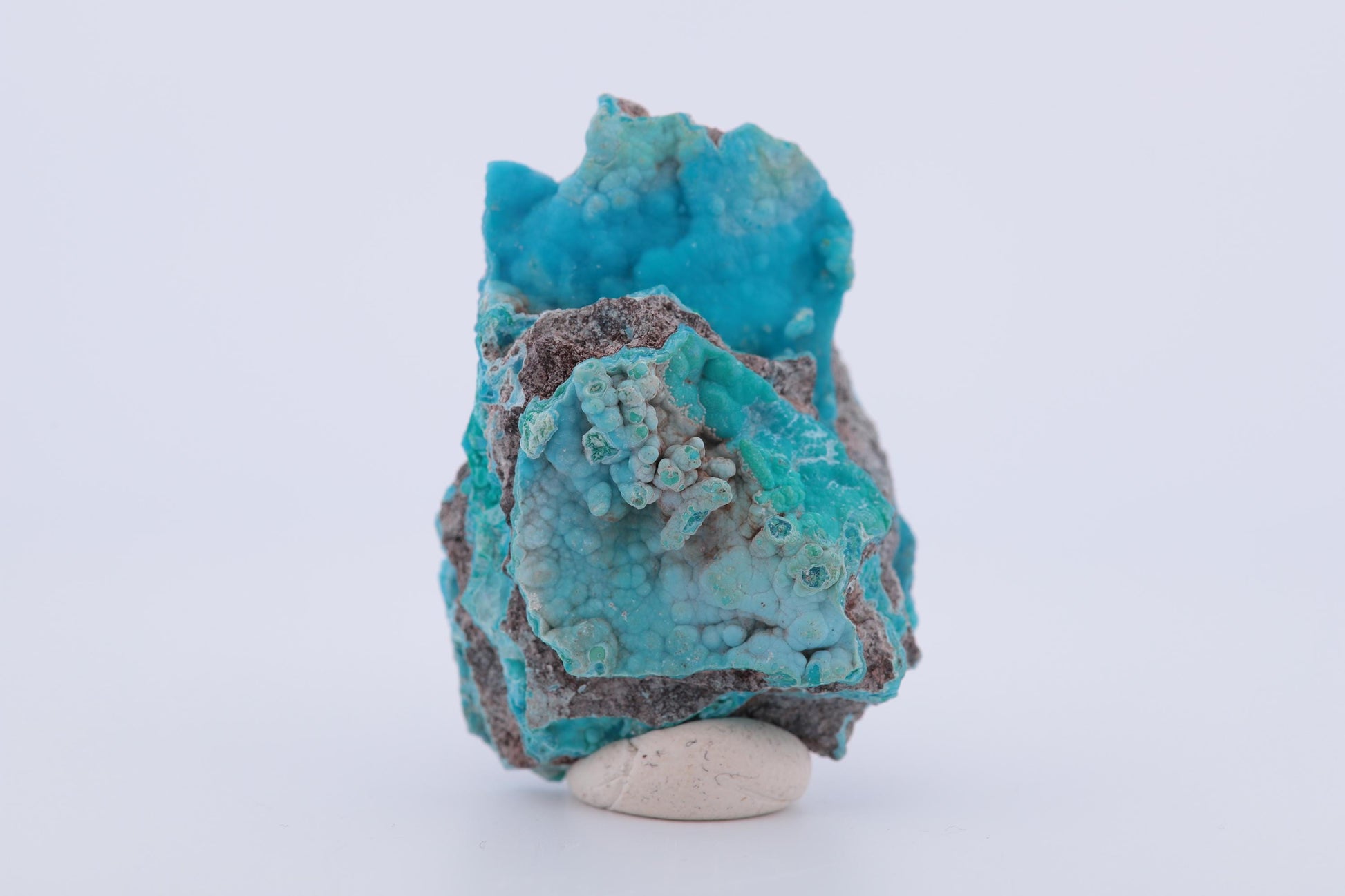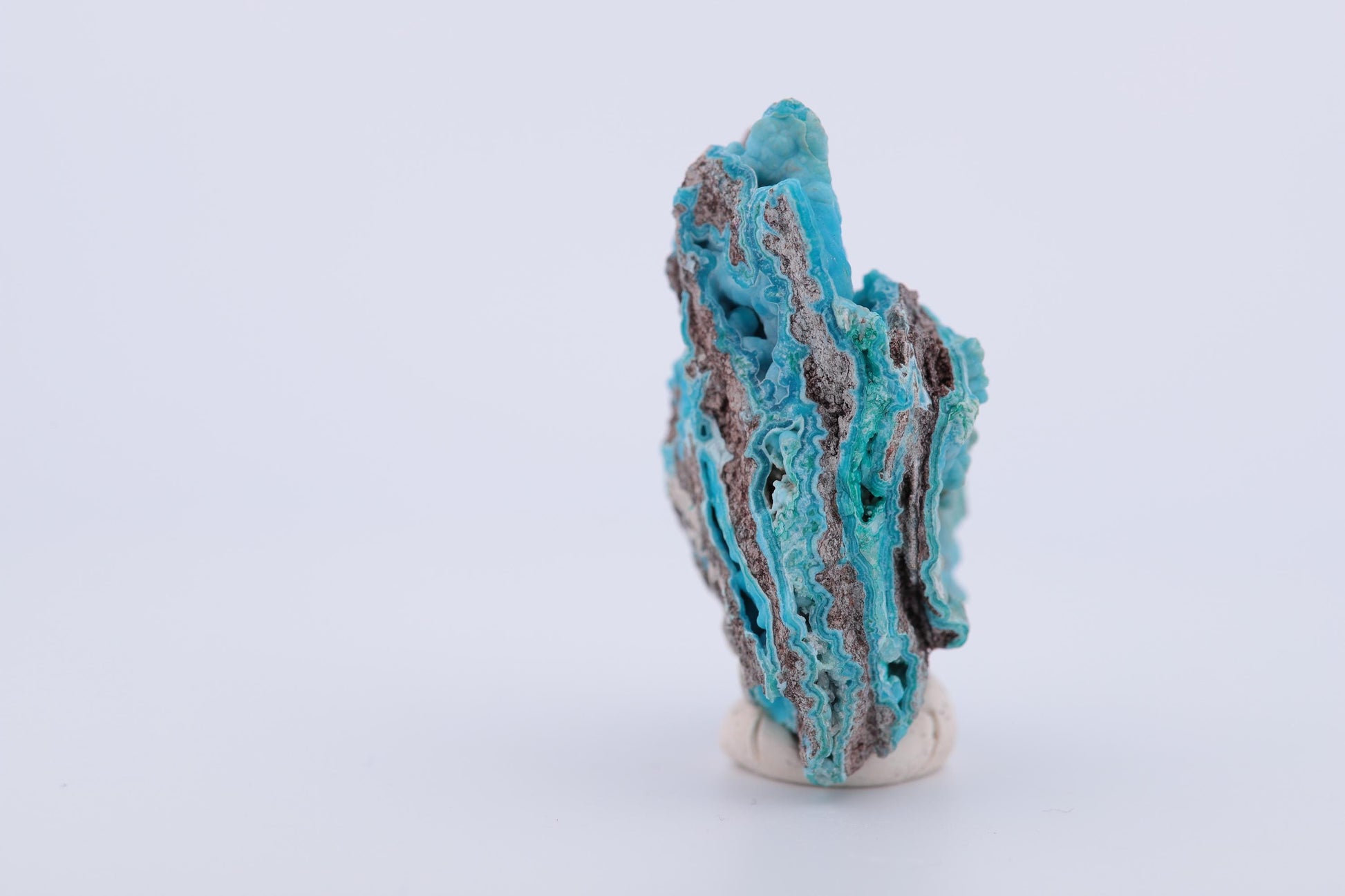L’hémimorphite est un minéral de silicate de zinc rare, connu pour sa structure cristalline fascinante avec des terminaisons différentes à chaque extrémité. Ce phénomène lui vaut son nom : "hémi-" pour moitié et "-morph" pour forme. L’hémimorphite du Congo est particulièrement prisée pour son bleu intense et sa transparence, ce qui en fait un spécimen très recherché.