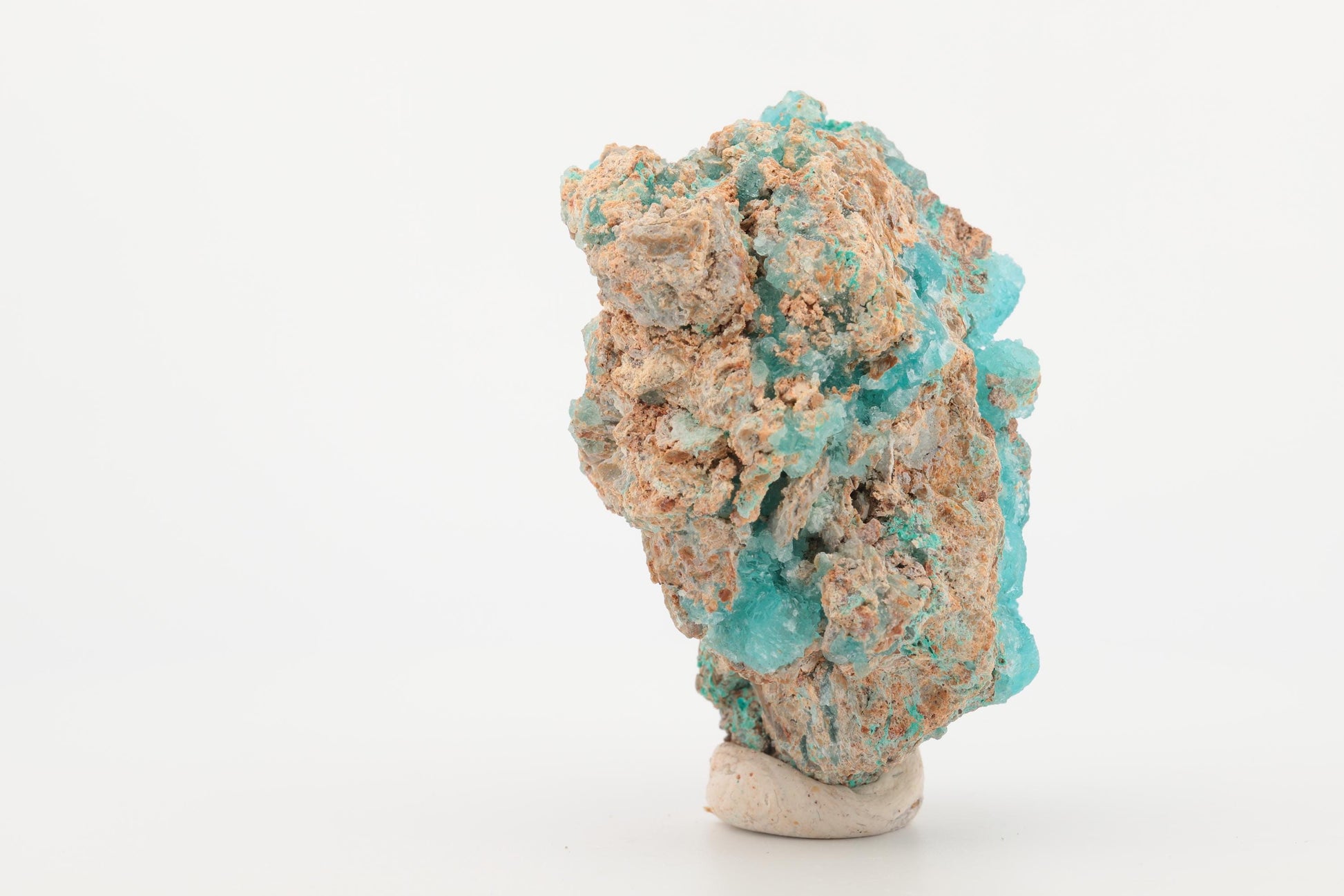 Cette superbe pièce de hémimorphite présente des cristaux de couleur bleu turquoise intense, contrastant magnifiquement avec la matrice brunâtre naturelle qui l’entoure.