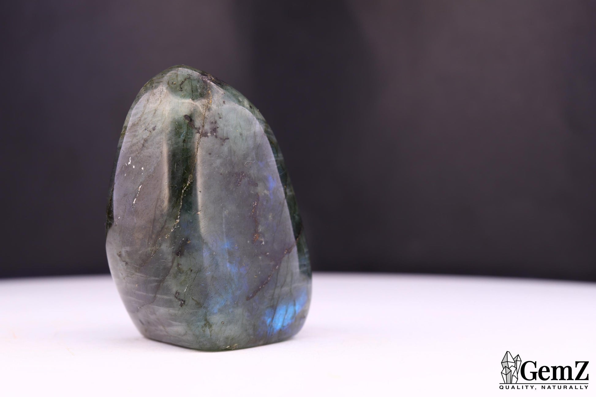 Cette magnifique labradorite polie révèle des reflets lumineux aux nuances arc-en-ciel, oscillant entre bleu, jaune et vert, selon l’angle de la lumière. Ses veines naturelles ajoutent une touche authentique et élégante.