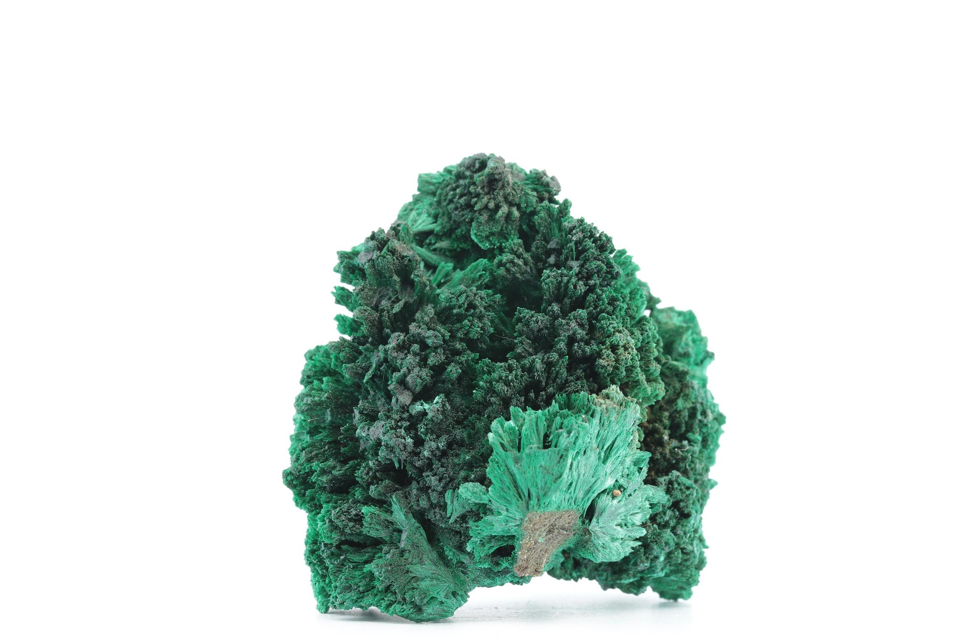Poids : 169 g | Dimensions : 6 x 6 x 4,5 cm Description Technique : Ce magnifique spécimen de malachite fibreuse du Congo se distingue par ses formations complexes et volumineuses, rappelant des gerbes naturelles denses. Les cristaux fibreux de malachite, d'un vert émeraude intense, forment des touffes et des reliefs aux textures organiques captivantes. La profondeur de sa structure, combinée à des nuances soyeuses et brillantes, fait de cette pièce une œuvre minérale unique et fascinante, parfaite pour les collectionneurs ou comme élément décoratif remarquable.