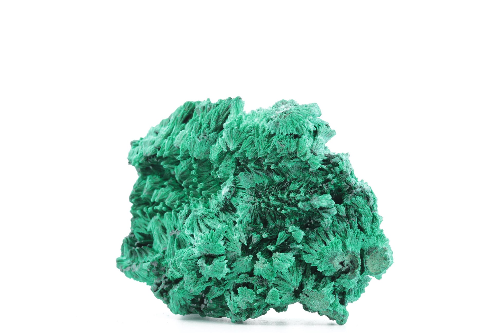 Ce magnifique spécimen de malachite fibreuse, issu des riches gisements du Congo, est un trésor naturel. Les cristaux fibreux, d’un vert émeraude éclatant, se déploient en structures rayonnantes et en relief, offrant une texture visuellement captivante. Les éventails cristallins, accompagnés de nuances plus sombres et profondes, confèrent à cette pièce une énergie vivante et élégante. Sa taille compacte mais volumineuse en fait un ajout parfait pour une collection ou une décoration intérieure exceptionnelle.