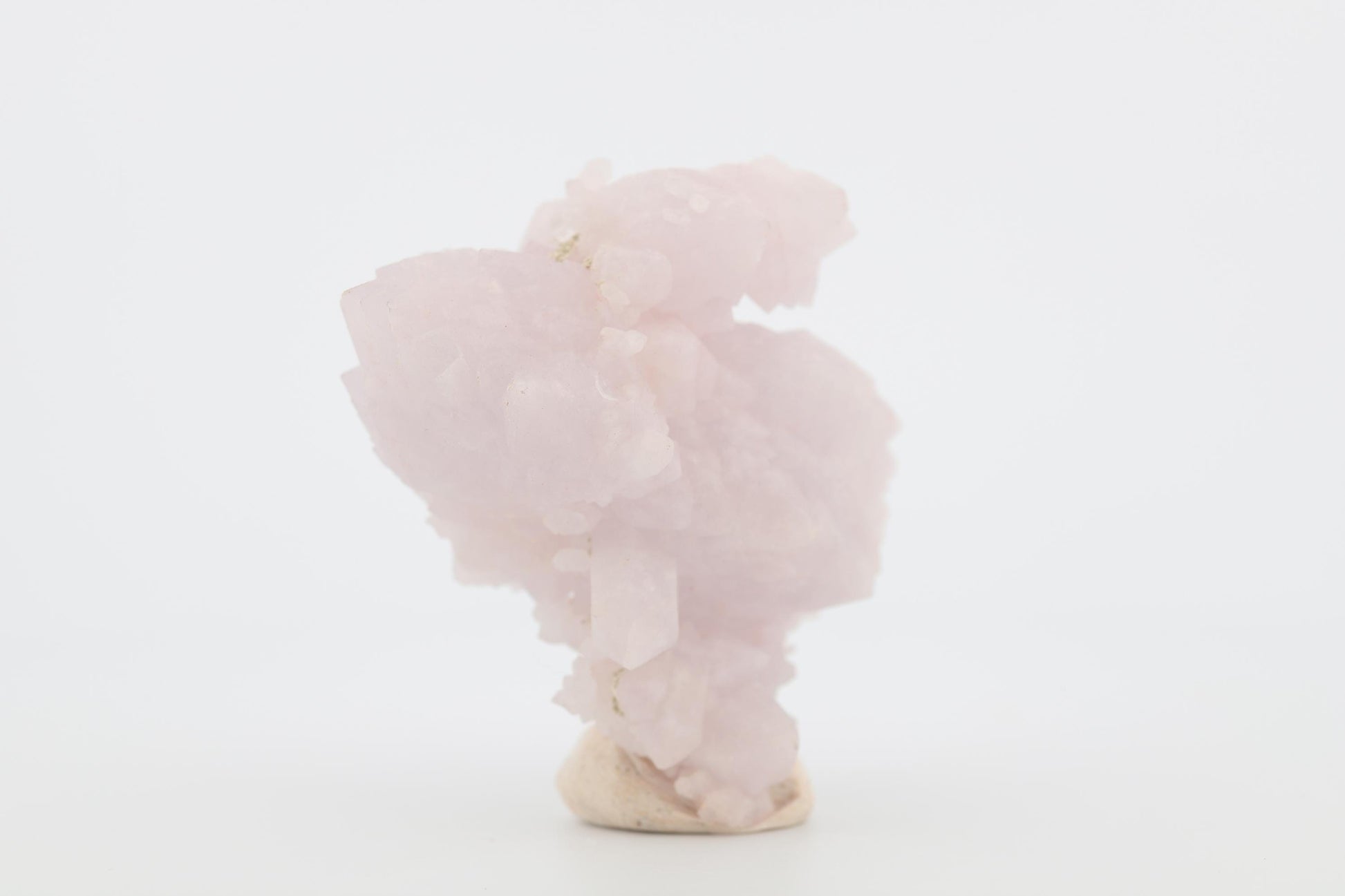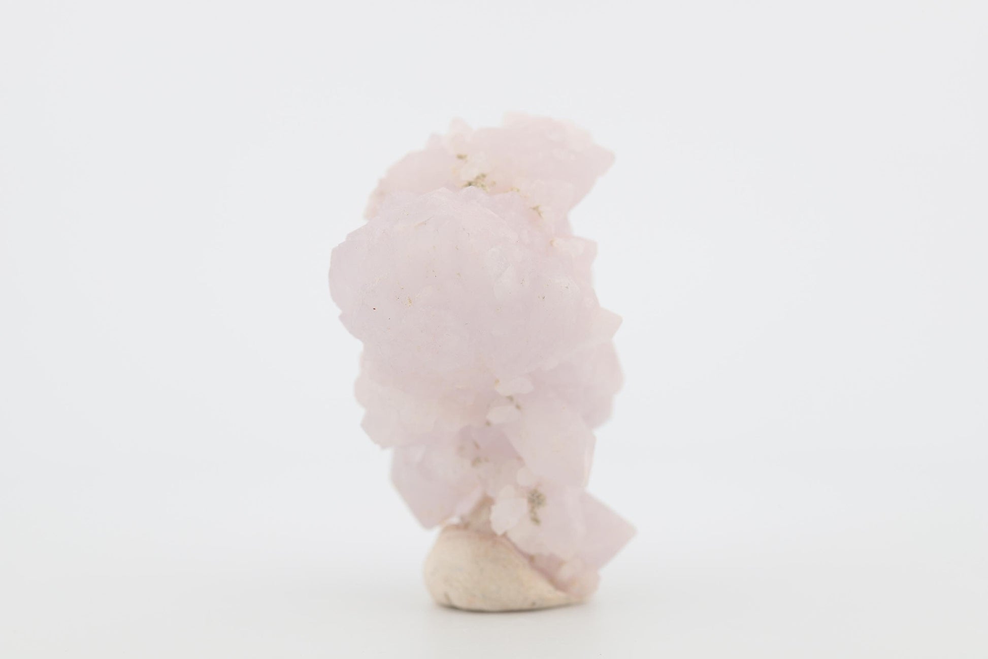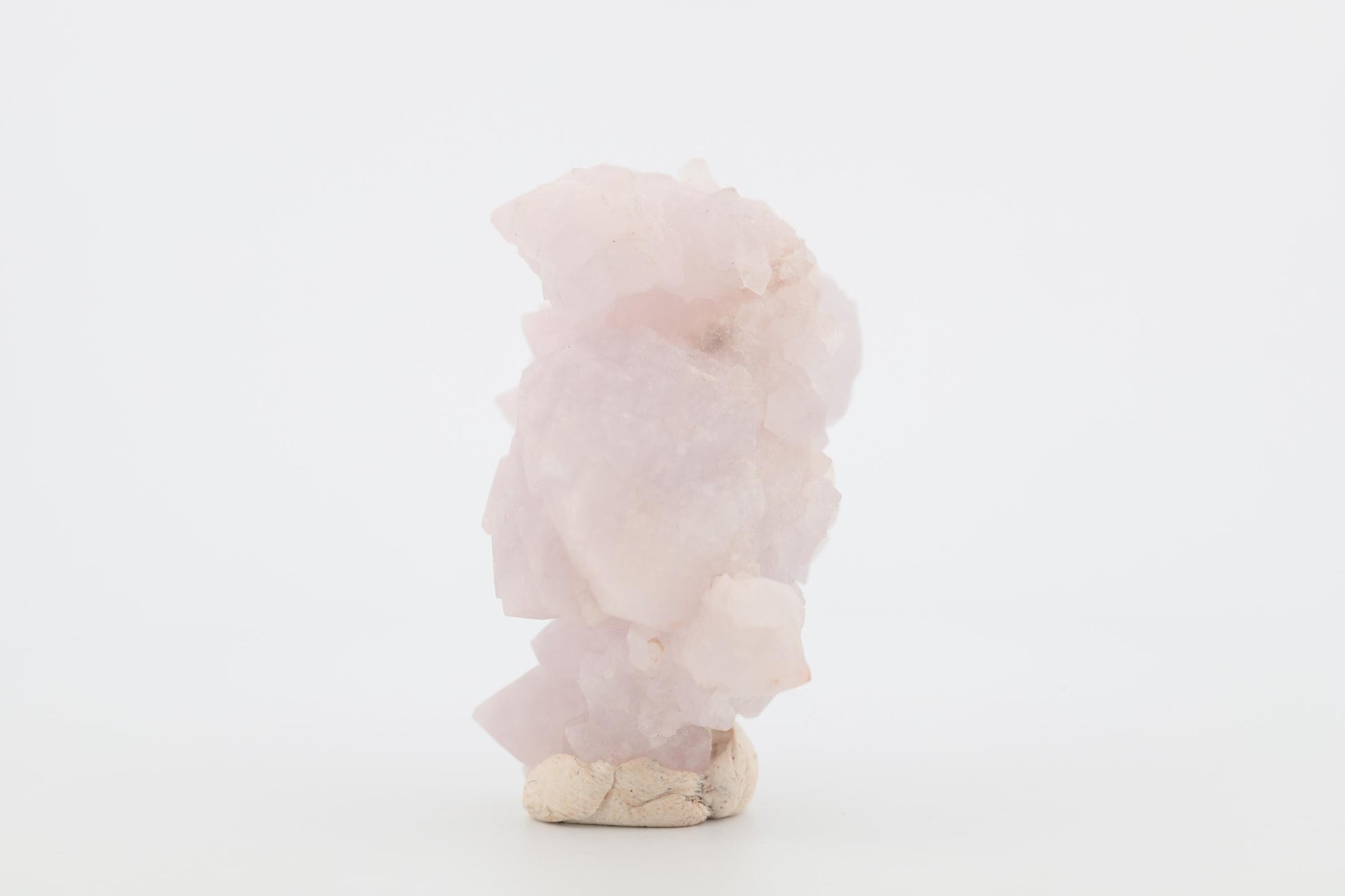 Ce superbe spécimen de quartz rose bi-terminé, provenant des mines de Tata au Maroc, présente des cristaux exceptionnellement bien formés avec une teinte rosée douce et apaisante. Sa particularité bi-terminée est rare, offrant une formation cristalline naturelle qui se termine par deux pointes distinctes, un signe de croissance libre dans toutes les directions. Les cristaux montrent une surface légèrement satinée avec une légère transparence, laissant entrevoir un cœur plus opaque. Quelques inclusions de minéraux verts ou gris viennent compléter la beauté de ce spécimen unique, accentuant son caractère naturel.