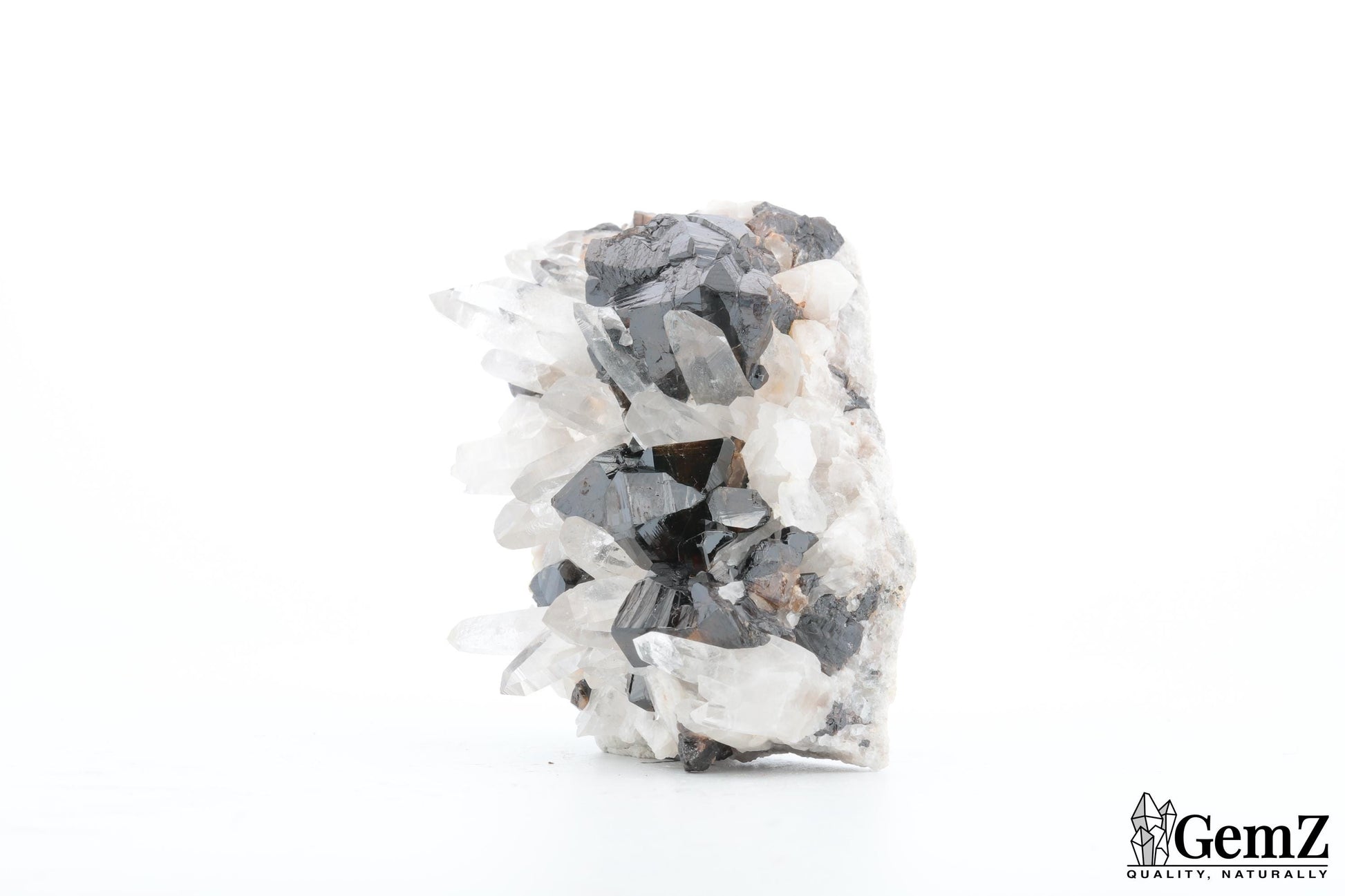 Cette pièce unique associe des cristaux de cassitérite noire brillante aux reflets métalliques à une base éclatante de cristal de roche. Les cristaux bien formés et géométriques contrastent magnifiquement avec les pointes translucides et scintillantes du quartz, offrant une allure saisissante et élégante. Un véritable trésor minéral provenant de la célèbre mine de Viloco en Bolivie.